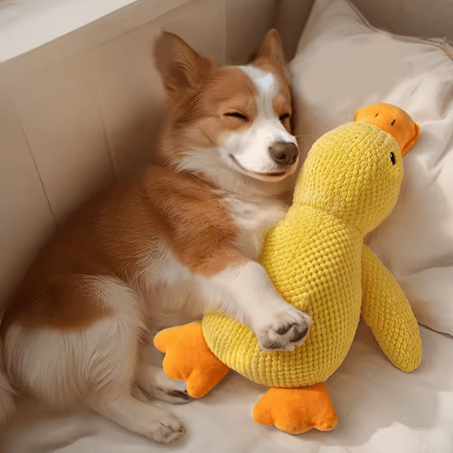 Le canard apaisant chien devient un repère rassurant dans le panier, sur le canapé ou en voiture. Il accompagne les chiots comme les chiens adultes et encourage des routines de repos plus stables.