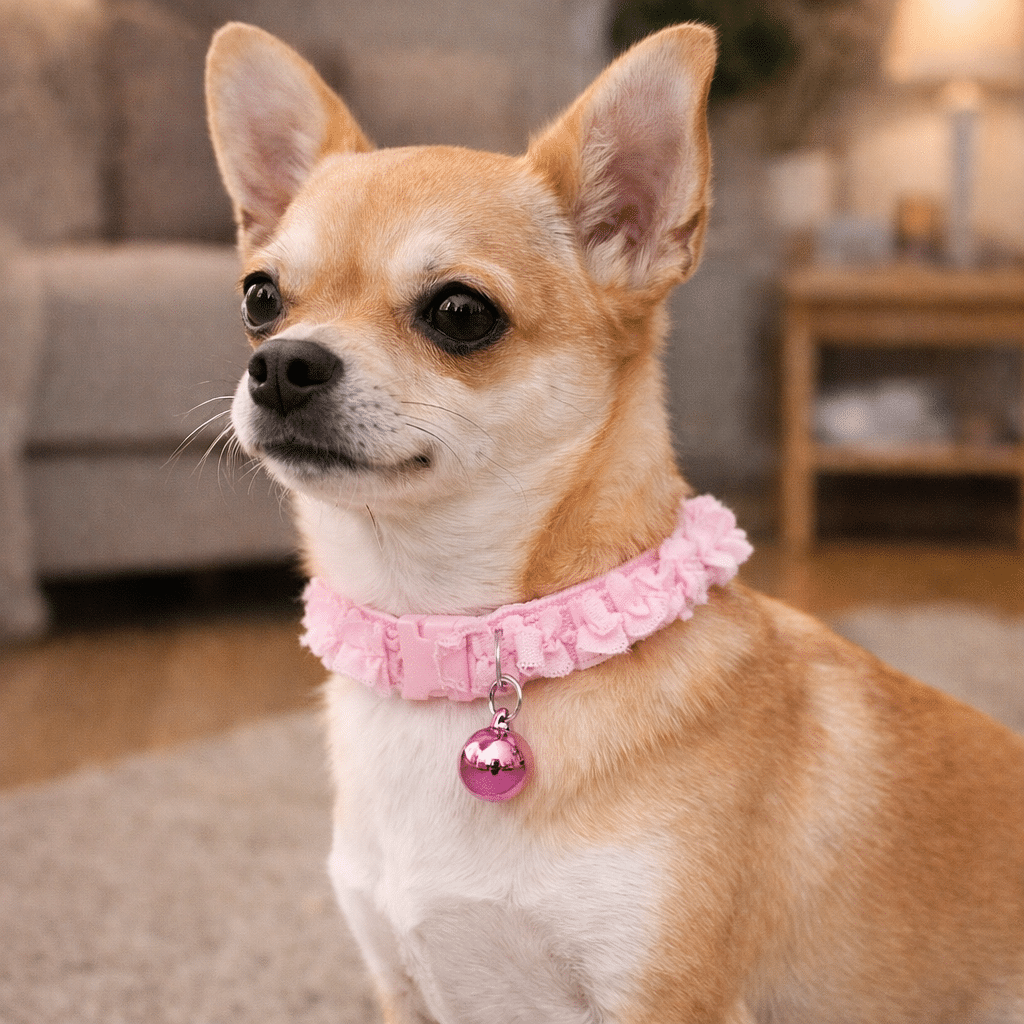Le collier en dentelle avec clochette pour chihuahua s’adapte à différents tours de cou tout en gardant un bon maintien.