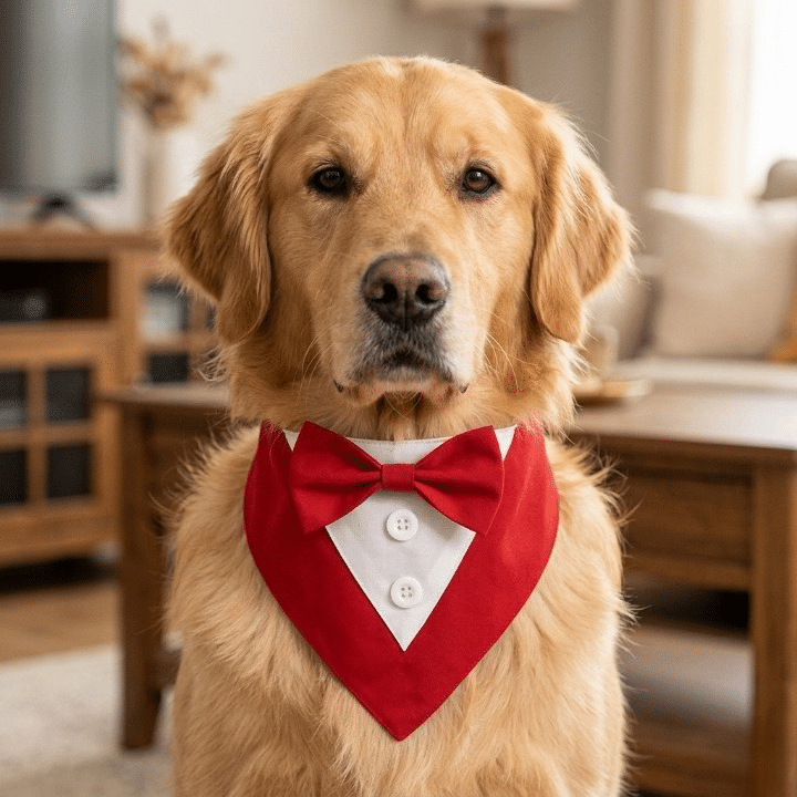 Ce déguisement noeud papillon rouge chien transforme votre petit compagnon en véritable gentleman grâce à son design élégant de smoking.