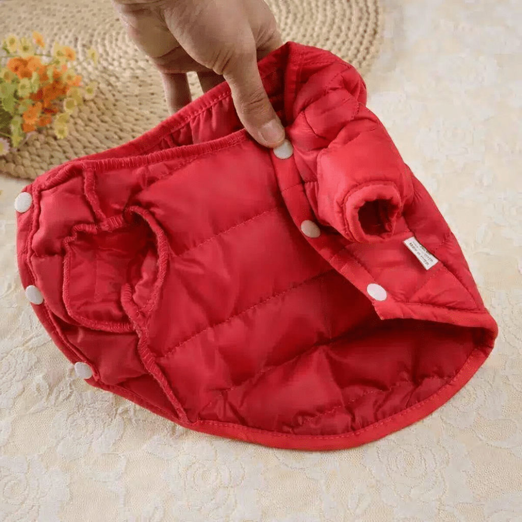 Cette doudoune coupe vent pour petit chien offre une protection optimale contre le froid et les intempéries grâce à son design matelassé qui conserve la chaleur corporelle de votre compagnon. Le rembourrage généreux assure un confort douillet pendant les promenades hivernales tout en maintenant une liberté de mouvement naturelle.