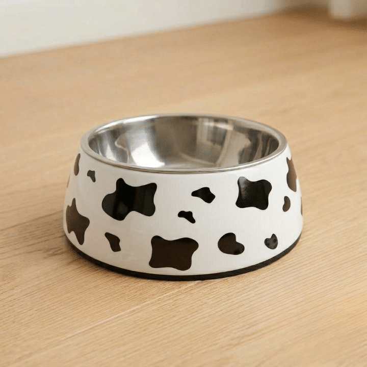 L’intérieur en inox de cette gamelle chien : inox motif vache noir et blanc garantit une hygiène parfaite pour les repas de votre compagnon.