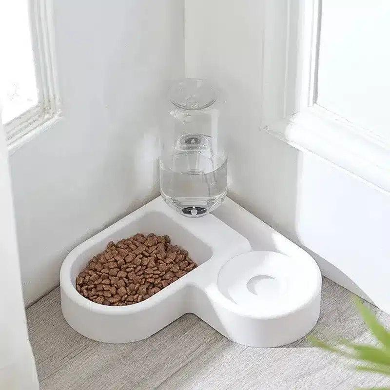 Une gamelle d’angle ingénieuse qui optimise votre espace tout en offrant confort et praticité. Deux compartiments séparés avec distributeur d’eau automatique pour des repas organisés.