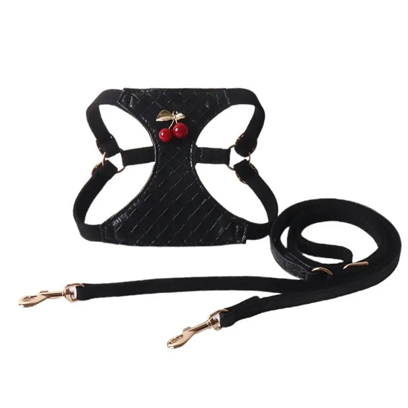 Une laisse assortie comprise accompagne le harnais pour un ensemble complet et élégant.