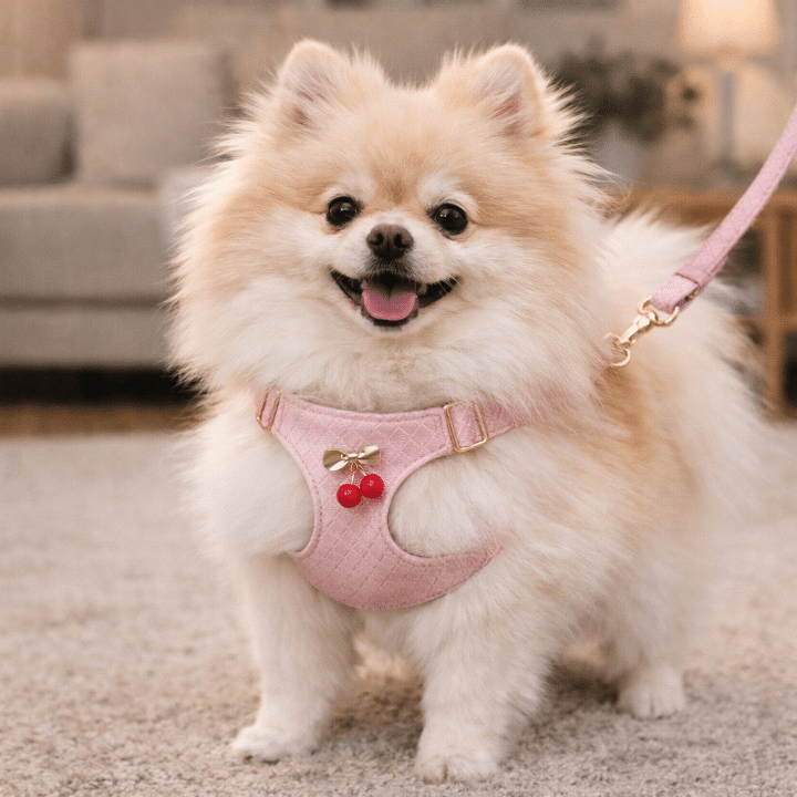 Le harnais cuir cerise petit chien combine style, confort et praticité, parfait pour les sorties du quotidien comme pour les moments plus habillés.