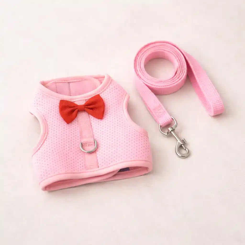 Ce harnais + laisse rose avec noeud rouge chihuahua offre une sécurité optimale grâce à sa conception qui répartit la pression sur le poitrail plutôt que sur le cou fragile de votre petit compagnon. Le design élégant avec noeud papillon rouge apporte une touche de raffinement qui transforme chaque sortie en moment de fierté pour vous et votre chien.