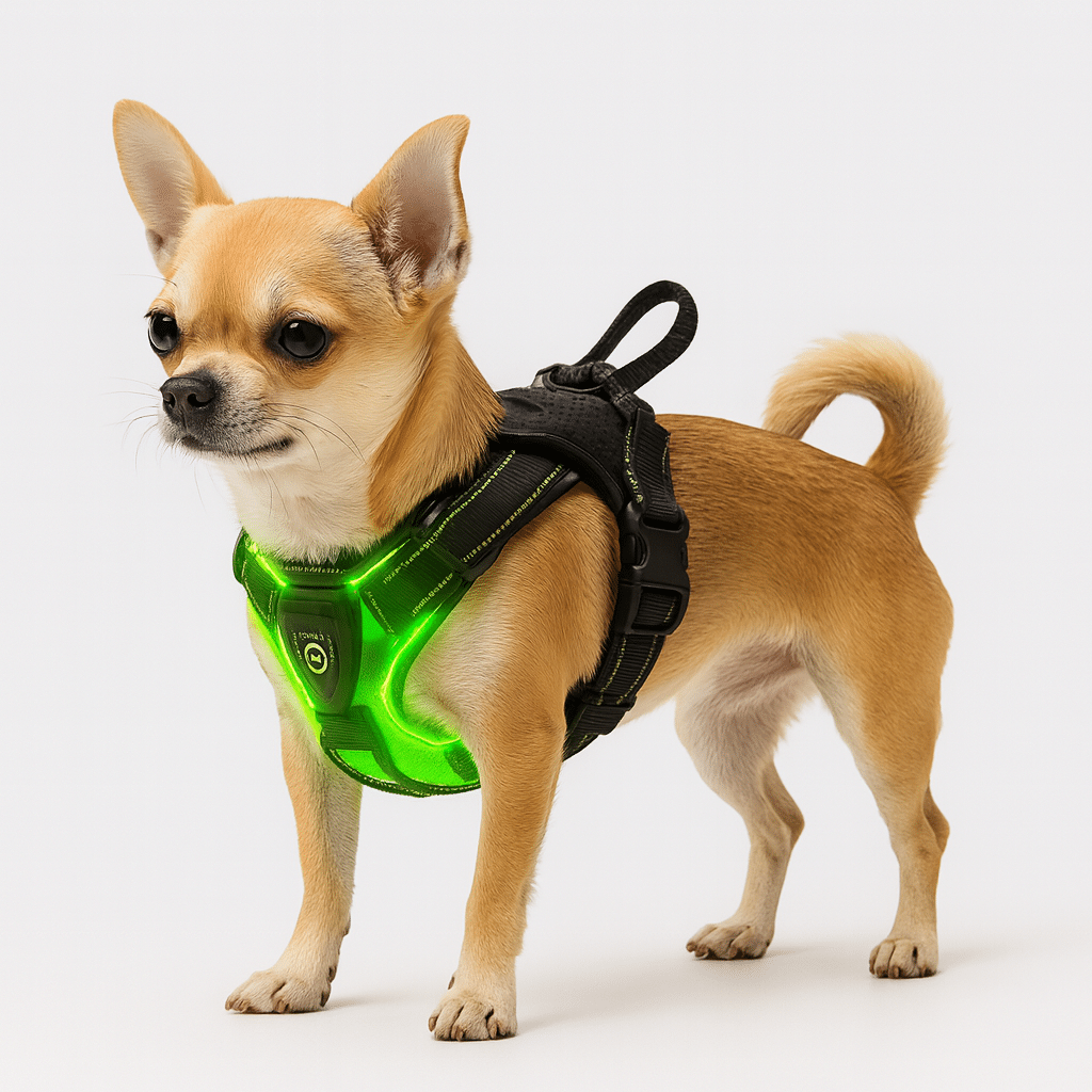 Ce harnais lumineux pour chien transforme les promenades nocturnes en moments sécurisés grâce à son système d’éclairage intégré qui rend votre compagnon visible de loin. La bande lumineuse réfléchissante située sur le devant du harnais attire immédiatement l’attention des passants et des automobilistes.