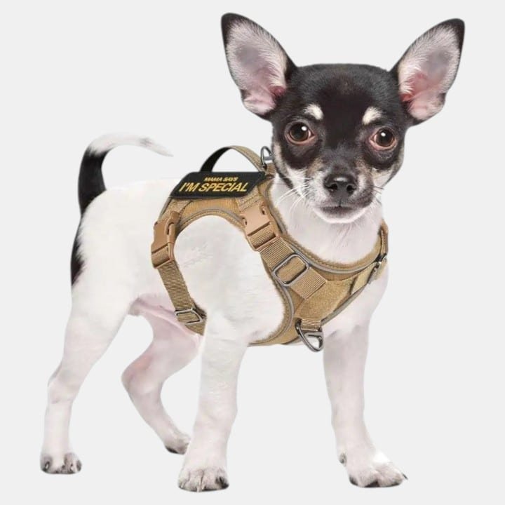 Un harnais tactique alliant style militaire et confort exceptionnel pour votre petit chien. Sa conception ergonomique évite les frottements tout en offrant un contrôle optimal.