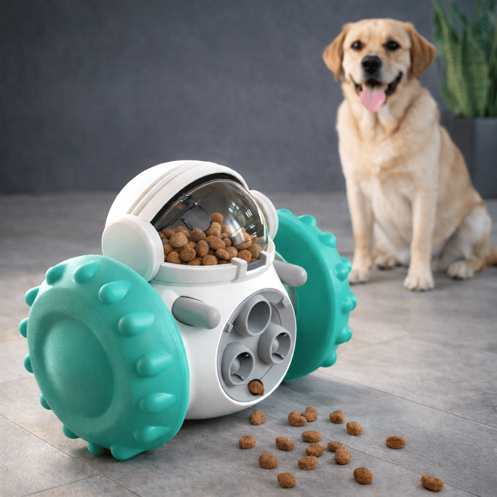 Votre chien joue, pousse, attrape, et il est récompensé sans s’en rendre compte. Ce système stimule son attention tout en l’occupant quand vous n’êtes pas là.