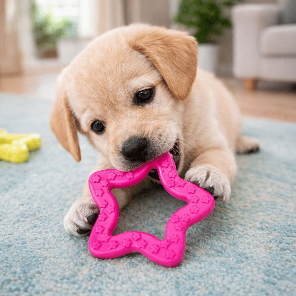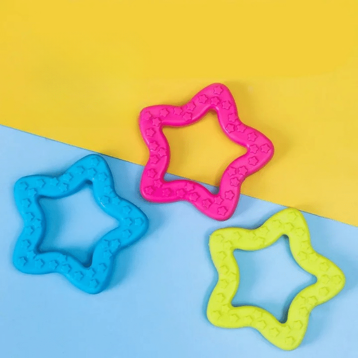Ce jouet en caoutchouc étoile pour faire ses dents chien présente une forme d’étoile à cinq branches parfaitement adaptée aux petites mâchoires. Sa surface texturée avec des reliefs offre une prise facile pour votre chiot et masse délicatement les gencives pendant la mastication.