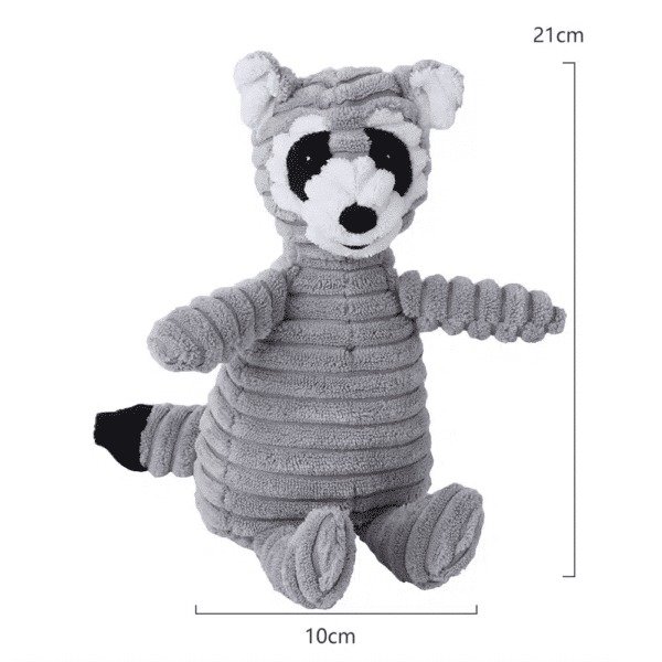Ce jouet en peluche raton laveur pour chien présente une texture côtelée unique qui stimule les sens de votre compagnon pendant le jeu. Les rayures en relief sur tout le corps offrent une prise facile pour les petites pattes et encouragent la mastication saine.