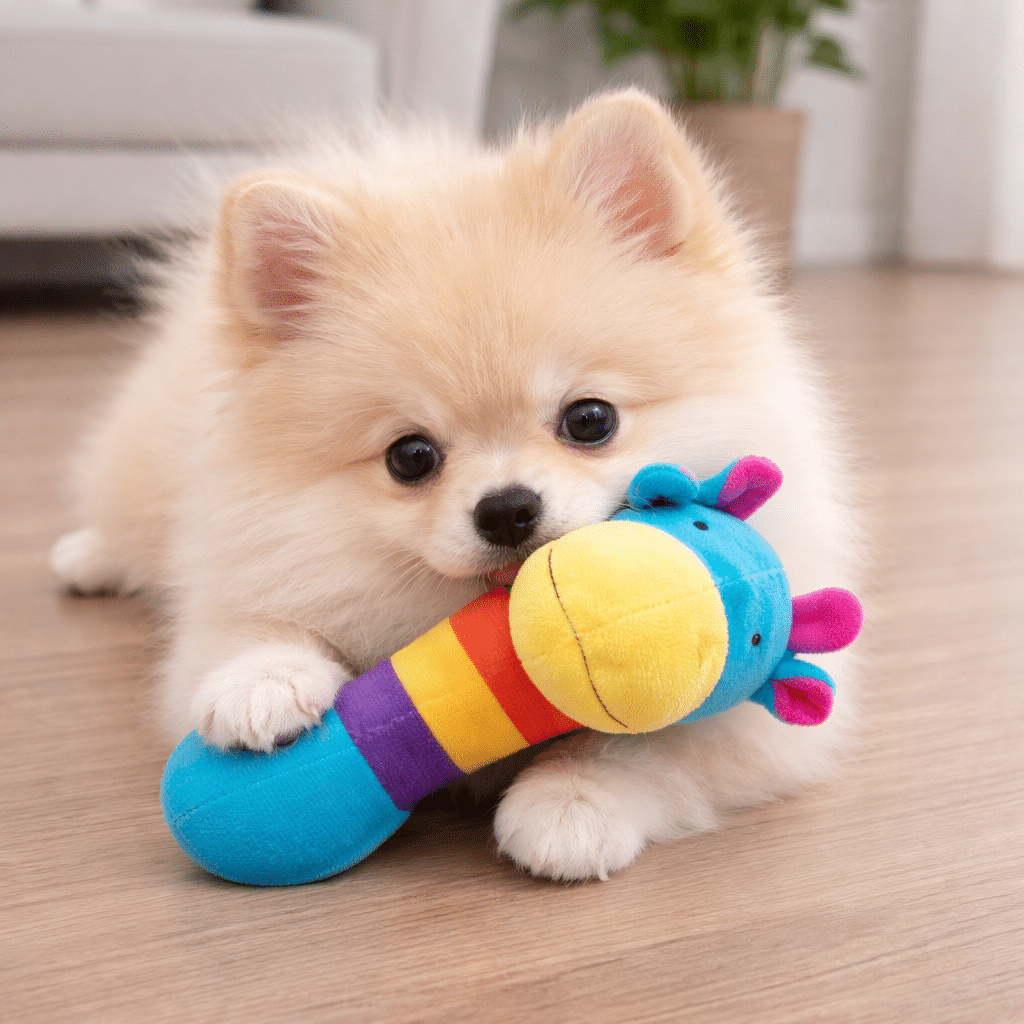 Ce jouet à mâcher en peluche girafe offre une forme allongée parfaite pour que votre petit chien puisse le saisir facilement entre ses pattes. La texture douce en peluche procure une sensation agréable lors des séances de mastication tout en respectant les gencives sensibles de votre compagnon.
