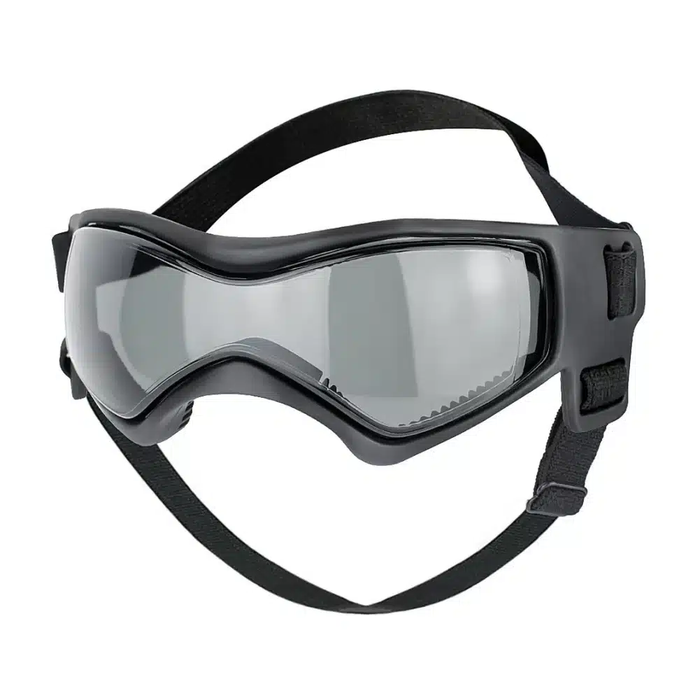 Ces lunettes de protection pour petit chien offrent une protection complète des yeux grâce à leurs verres teintés qui filtrent les rayons du soleil et les particules en suspension. Le design ergonomique s’adapte parfaitement à la morphologie des petits chiens avec ses contours arrondis qui épousent le museau sans gêner la respiration.