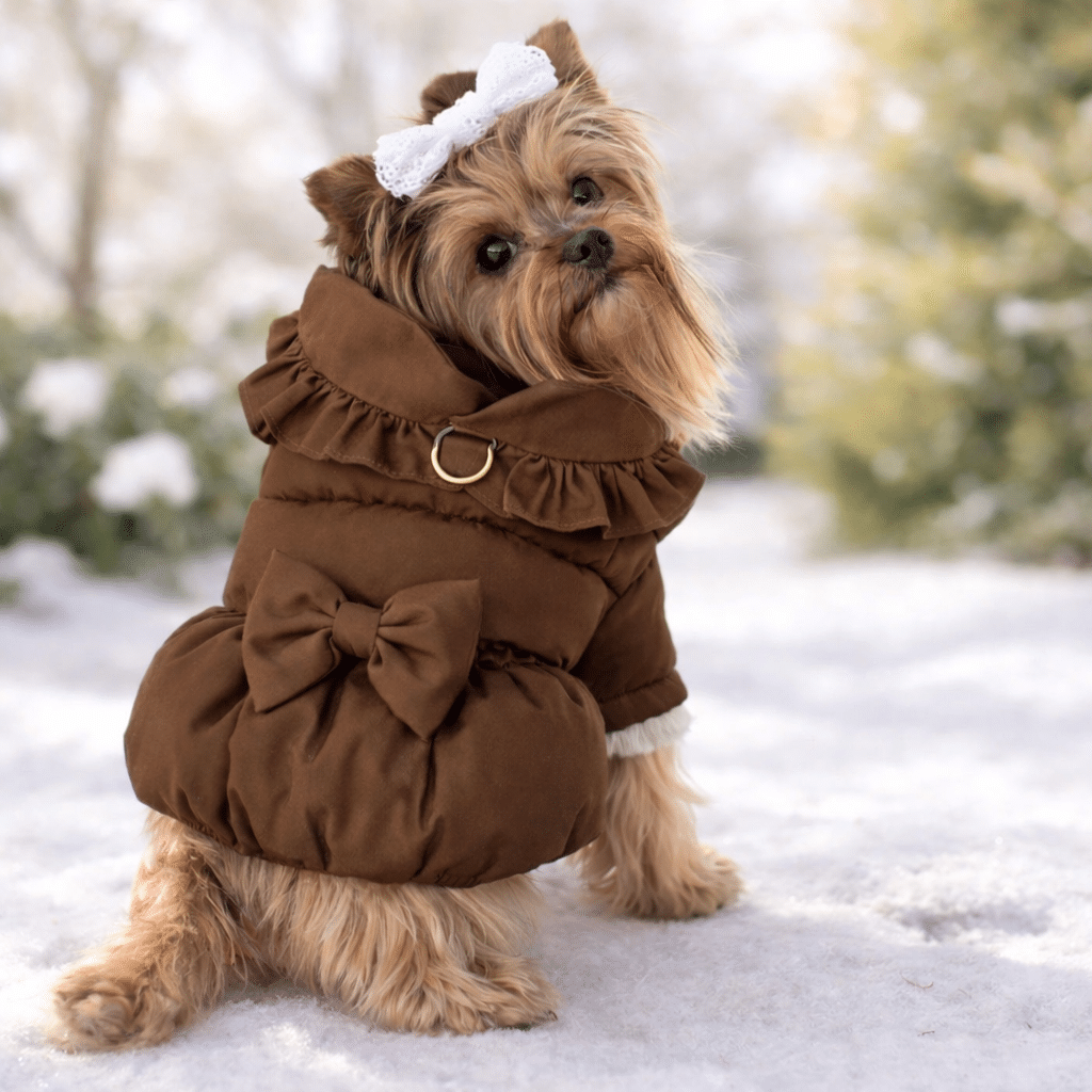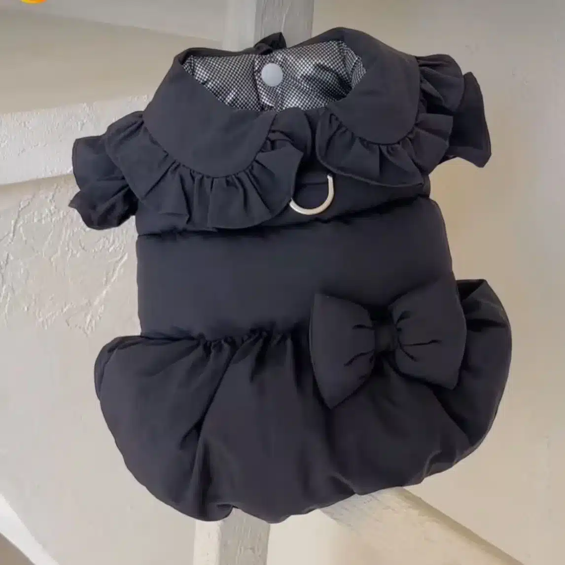 Ce manteau à nœud de princesse pour petit chien protège votre compagnon du froid avec son rembourrage épais qui maintient la chaleur corporelle. Le col à volants ajoute une protection supplémentaire au niveau du cou tout en créant un look adorable.