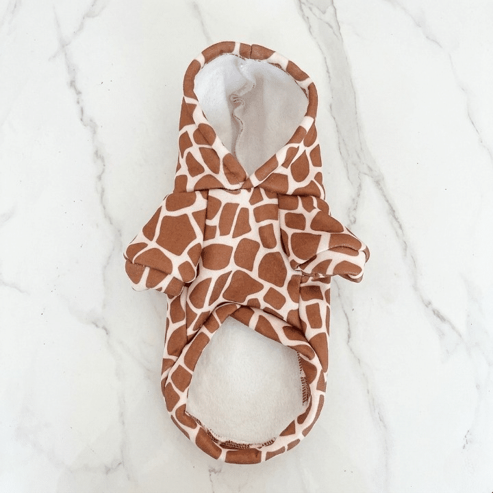 Ce manteau chihuahua girafe protège votre petit compagnon du froid grâce à sa coupe intégrale avec capuche.