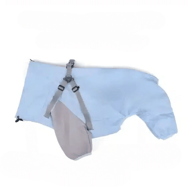 Le système de fixation sécurisé avec boucles maintient fermement le vêtement en place, même quand votre chien s’agite ou court. La protection intégrale du ventre empêche l’humidité de remonter par le dessous, gardant votre animal au sec de la tête aux pattes.