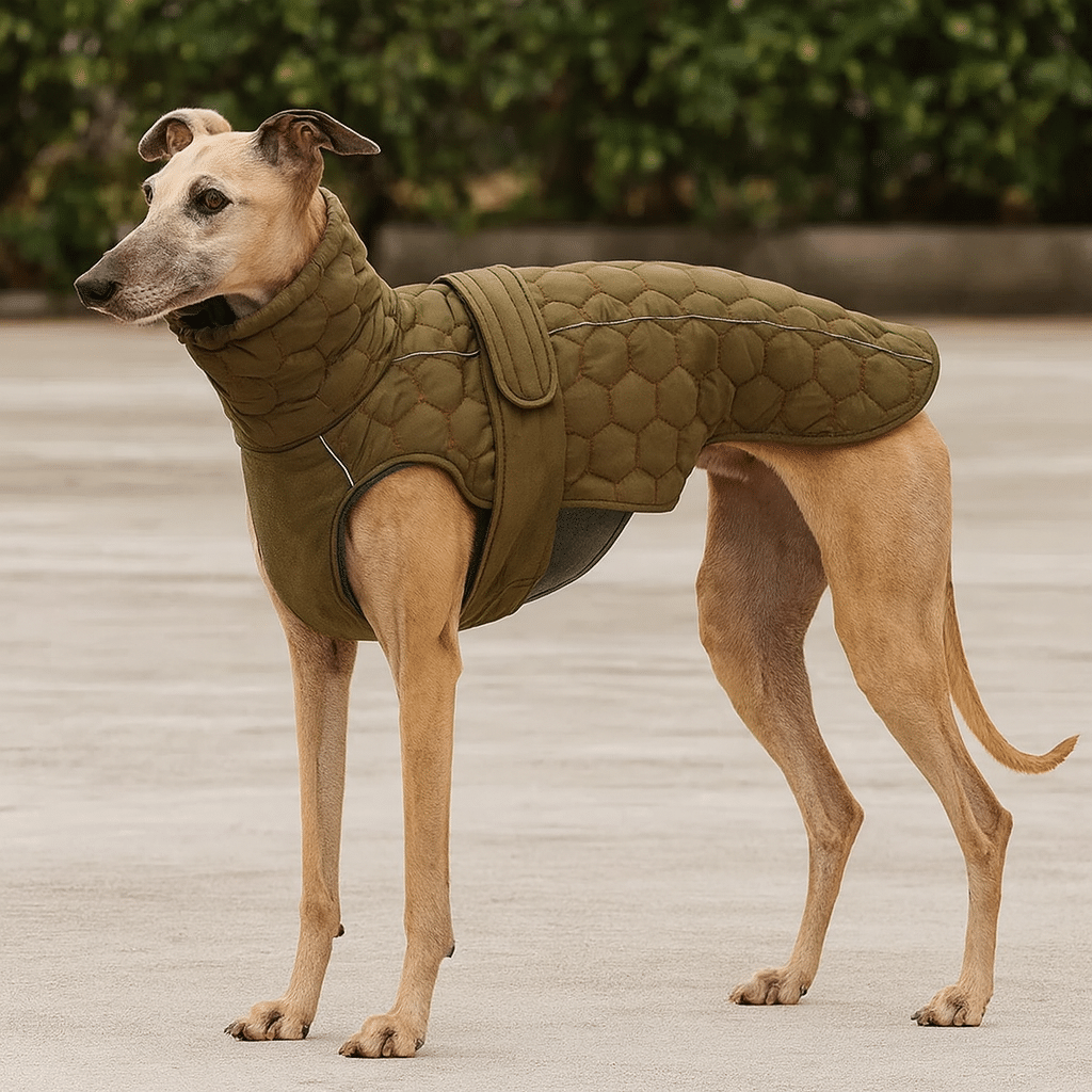 Parfait pour mon lévrier italien ! La coupe est adaptée à sa morphologie fine et le matelassage le protège bien du froid.