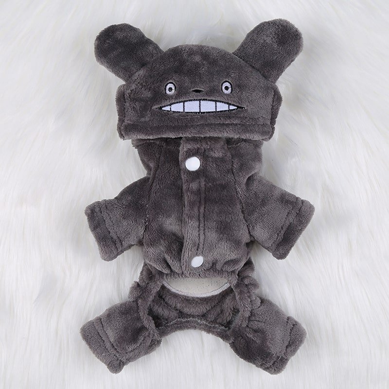 Ce manteau polaire pour petit chien reproduit fidèlement l’apparence du célèbre personnage Totoro avec ses oreilles arrondies caractéristiques et son ventre blanc contrastant avec le corps gris. La capuche intégrée protège efficacement la tête et les oreilles de votre compagnon contre le froid et les intempéries.