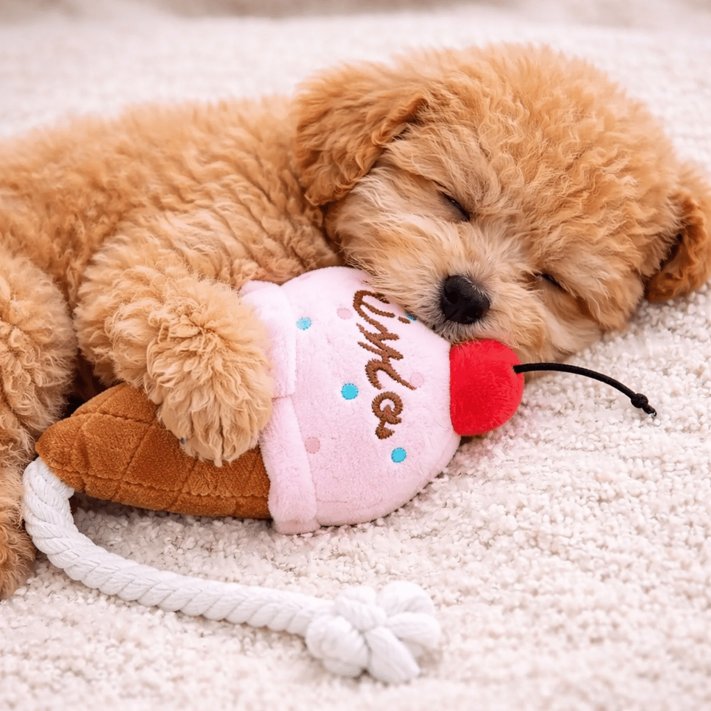 Le design matelassé du cornet apporte une texture intéressante sous les dents de votre chien, satisfaisant son besoin naturel de mordiller. La peluche glace italienne pour chien stimule l’instinct de jeu grâce à ses différentes parties à explorer : le cornet texturé, la partie douce du dessus et la petite cerise qui attire l’attention.