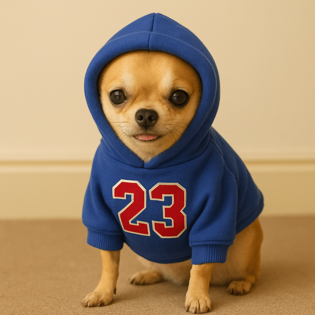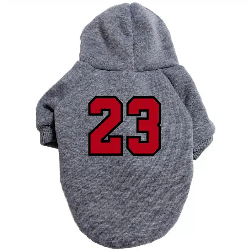 Ce pull 23 pour chihuahua offre une protection complète contre le froid grâce à sa capuche qui couvre parfaitement la tête de votre petit compagnon. Le design sportif avec le numéro 23 apporte un style moderne et tendance qui transforme chaque promenade en moment fashion.