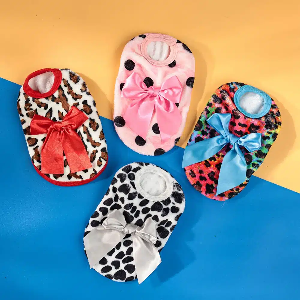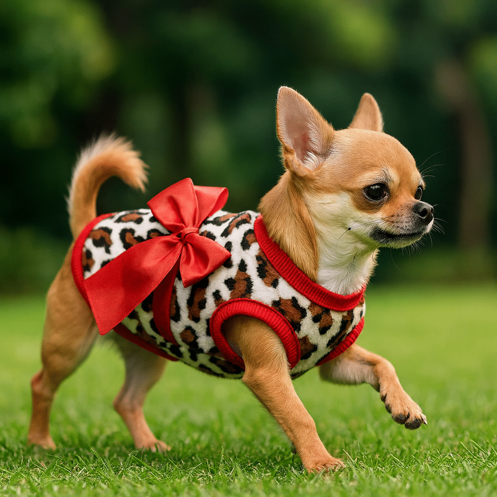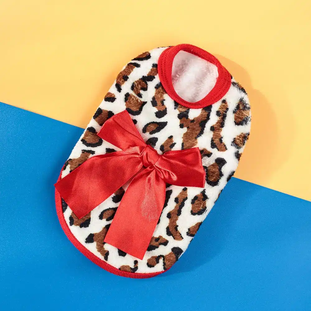 Ce pull chihuahua avec noeud offre une protection optimale contre le froid grâce à sa coupe ajustée qui épouse parfaitement les contours du petit chien. Le motif léopard élégant apporte une touche de style qui fait tourner les têtes lors des promenades.