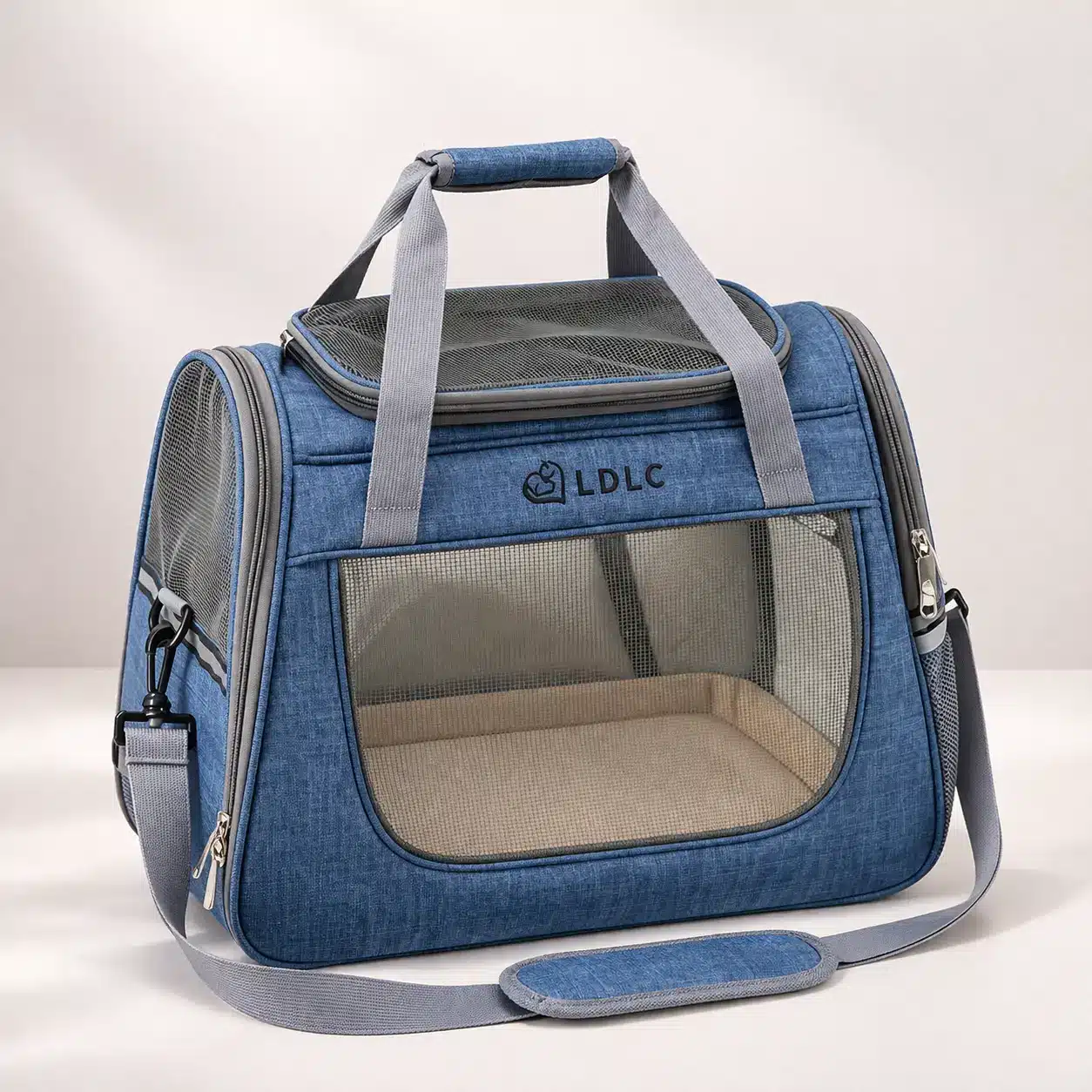Les poignées rembourrées garantissent une prise en main confortable même lors de longs déplacements, tandis que la bandoulière ajustable répartit le poids de façon équilibrée sur votre épaule. Votre petit chien bénéficie d’un espace douillet avec un fond moelleux qui amortit les mouvements.