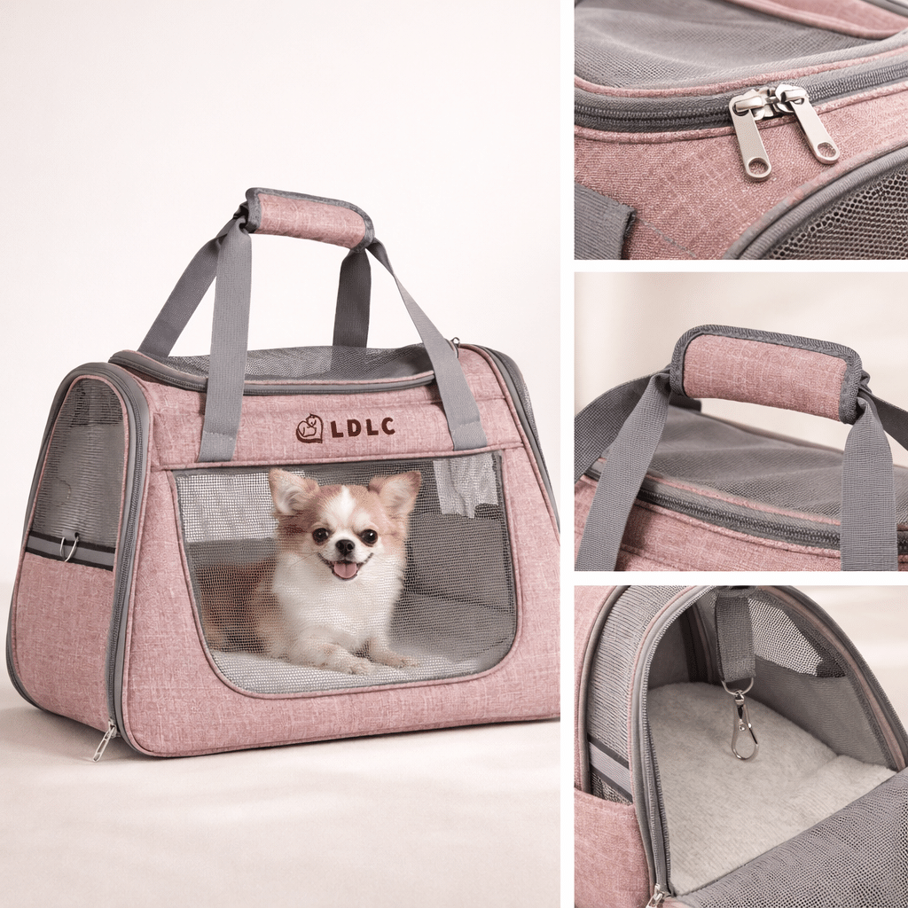 Ce sac de transport rose respirant petit chien offre une visibilité parfaite grâce à ses larges fenêtres en maille qui permettent à votre compagnon d’observer son environnement tout en restant en sécurité. Les parois ventilées assurent une circulation d’air optimale pour le bien-être de votre animal durant les trajets.