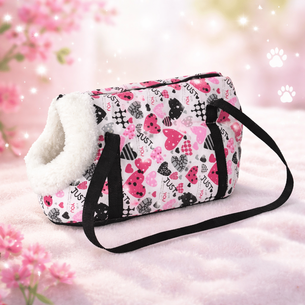Ce sac rose de transport pour petit chien présente un design élégant avec des motifs de cœurs et d’éléments décoratifs qui apporte une touche de style lors de vos déplacements. La forme structurée et spacieuse offre à votre compagnon un espace confortable pour voyager en toute sérénité.