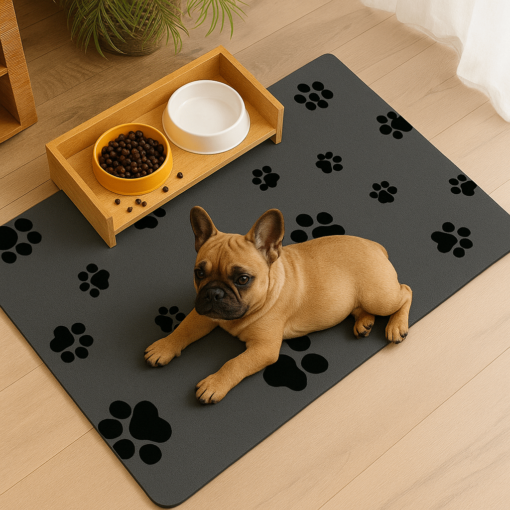L’installation se fait en quelques secondes : il suffit de poser le tapis sous les gamelles de votre chien. Sa surface imperméable résiste aux taches et aux odeurs, garantissant une hygiène parfaite jour après jour. Le design avec empreintes ajoute une touche décorative qui s’intègre harmonieusement dans votre intérieur tout en restant fonctionnel.
