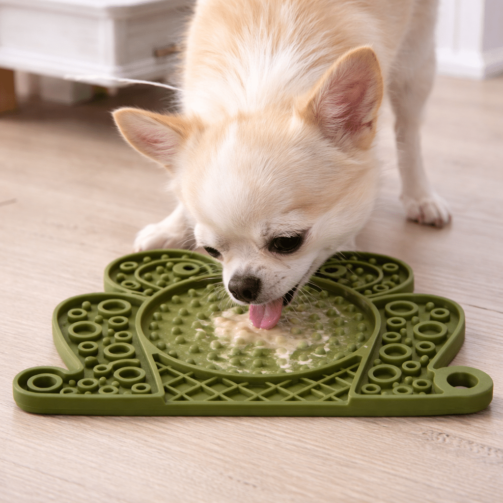 Ce tapis de léchage forme grenouille transforme les moments d’anxiété en instants de bien-être. Parfait lors des orages, des feux d’artifice ou simplement pour occuper votre chien, il canalise son énergie de manière positive. La surface antidérapante assure une utilisation sécurisée au sol, tandis que les reliefs permettent d’étaler facilement pâtées, yaourts ou friandises molles pour prolonger le plaisir de votre animal.