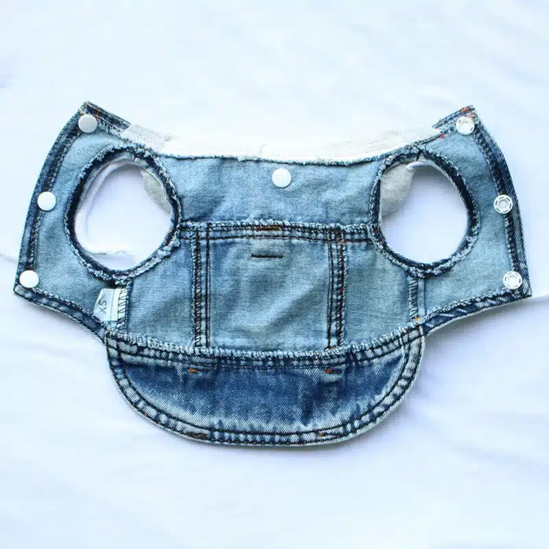 Le col montant protège délicatement le cou de votre petit compagnon contre les courants d’air frais. Cette veste sans manche jean petit chien se porte confortablement au quotidien sans gêner les mouvements de course ou de jeu.